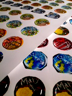 グッズは缶バッチとチャームの2種類(各10デザイン)のハズが、同日同会場で(しかも数日前まで名前しか知らなかったのにひどい勢いでハマってしまった)ゲームのオンリーがあると聞いてそれのグッズも(自分+身内サプライズ用に)何個か作りたいなぁなんて妄想してたらいつのまにかタイバニのほうのボールペンとチャーム(各4コンセプト8デザインで更に色調違い2パターン)が出来上がってるし、ホントについでか何かのようにそのゲームのほうのチャームシート(3デザイン×2色調)とか印刷終わってたし。でもって個数も「ご挨拶(という名のナンパ)用も含めて各3個ずつくらいでいいよね~」とか言いながらTV見てたらもう7個目が出来上がってたので「同じ種類は同じ個数なきゃ嫌!」という厄介な性格を持つ私は全部7個ずつ作るという自虐作業を敢行。これ死ぬ気で配ってこないと帰りのキャリーの重さがK点突破だと思います。ゲーム以外の同日同会場もすごい楽しみにしてたジャンルだしぅうわぁああぁあああもう…!